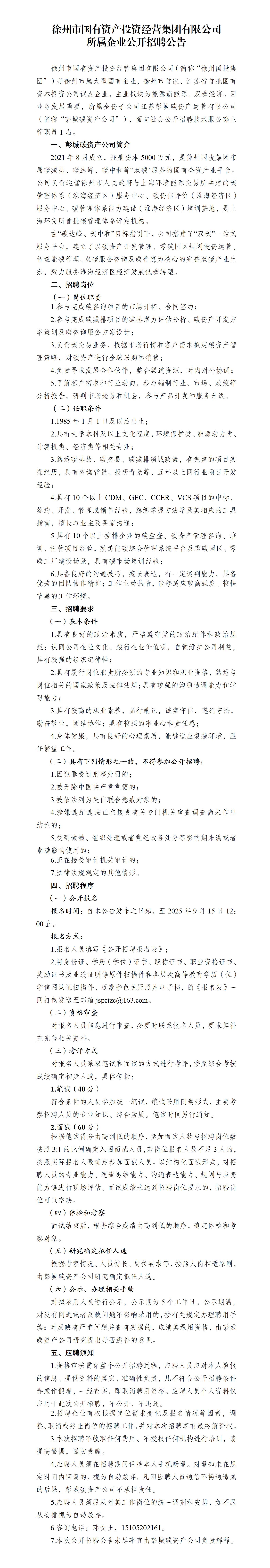 江蘇彭城碳資產(chǎn)運(yùn)營(yíng)有限公司公開(kāi)招聘報(bào)名表