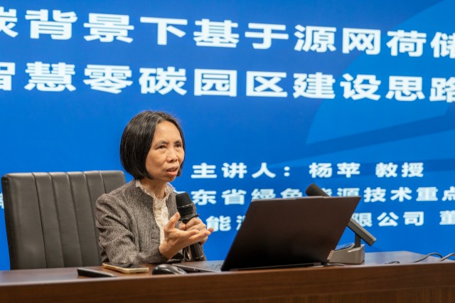 在授課過程中,楊蘋教授系統(tǒng)闡述了源網(wǎng)荷儲一體化的基本概念、系統(tǒng)架構(gòu)、運(yùn)行機(jī)制及其在提升能源效率、保障電力安全、促進(jìn)新能源消納方面的重要作用。結(jié)合典型案例,重點(diǎn)講解如何運(yùn)用源網(wǎng)荷儲一體化模式,統(tǒng)籌園區(qū)能源供應(yīng)、電網(wǎng)運(yùn)行、負(fù)荷管理和儲能配置,實(shí)現(xiàn)園區(qū)的低碳零碳運(yùn)行,打造綠電園區(qū)。最后,結(jié)合徐州產(chǎn)業(yè)特點(diǎn)、資源稟賦,共同探討本地區(qū)推動源網(wǎng)荷儲協(xié)同互動、建設(shè)零碳園區(qū)的潛在路徑與策略建議。